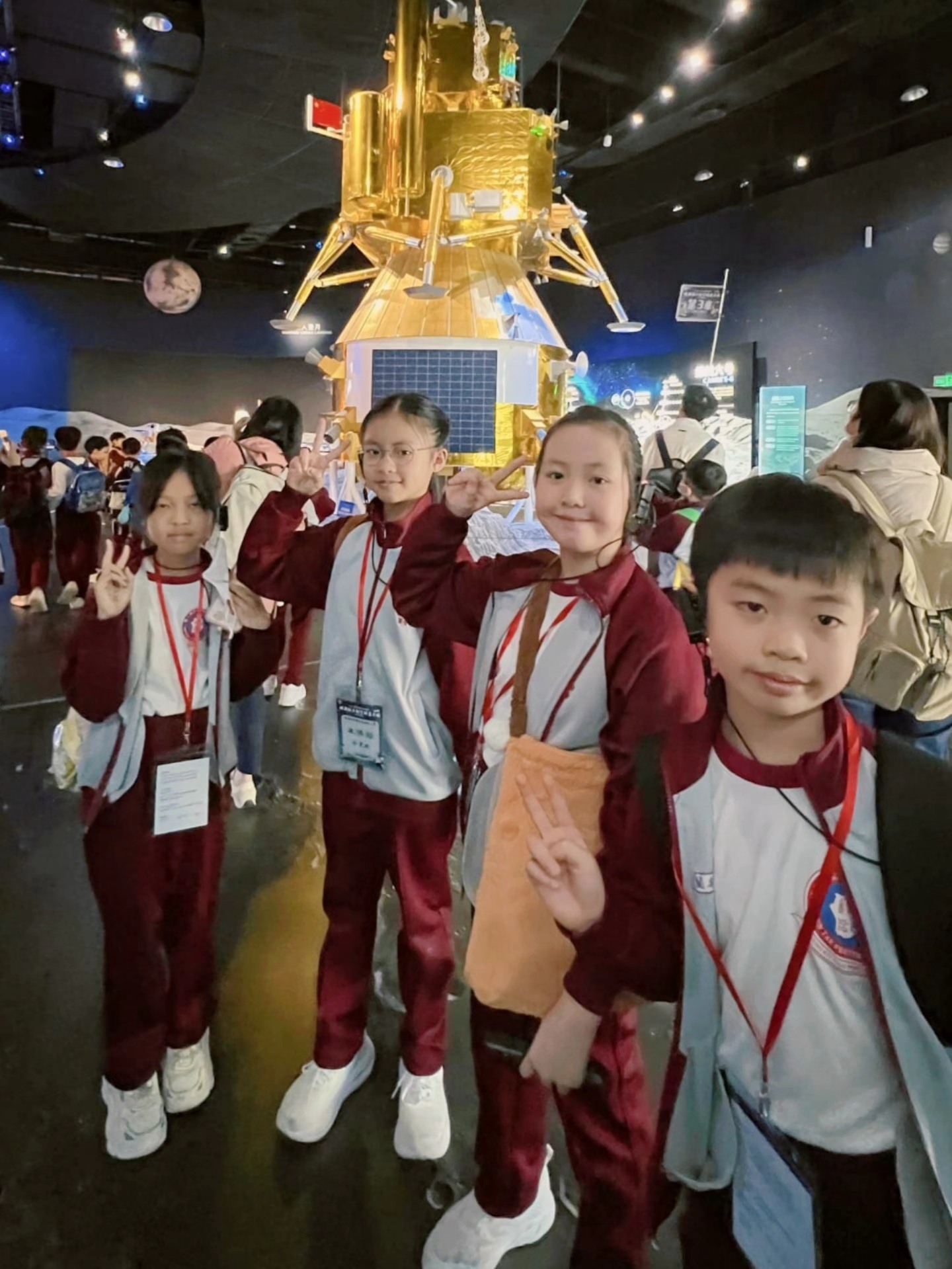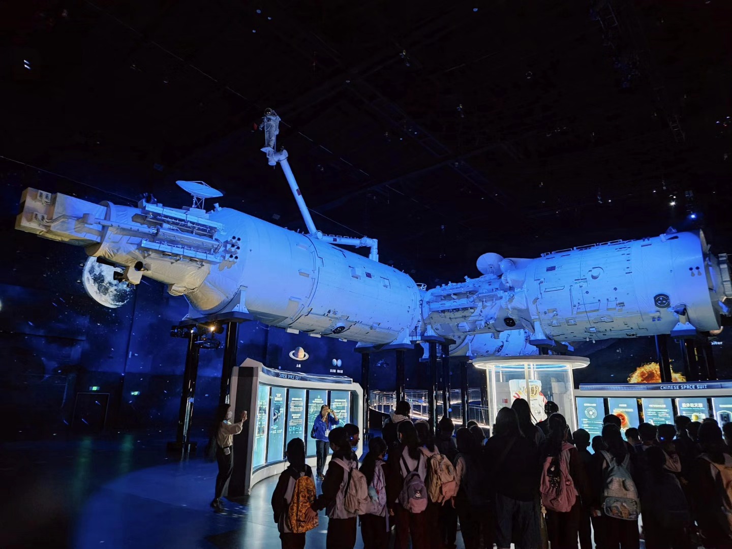 同學近距離欣賞航天器模型,體驗互動展區模擬任務,在遊歷中增添科學知識,激發對宇宙的好奇與夢想。