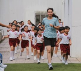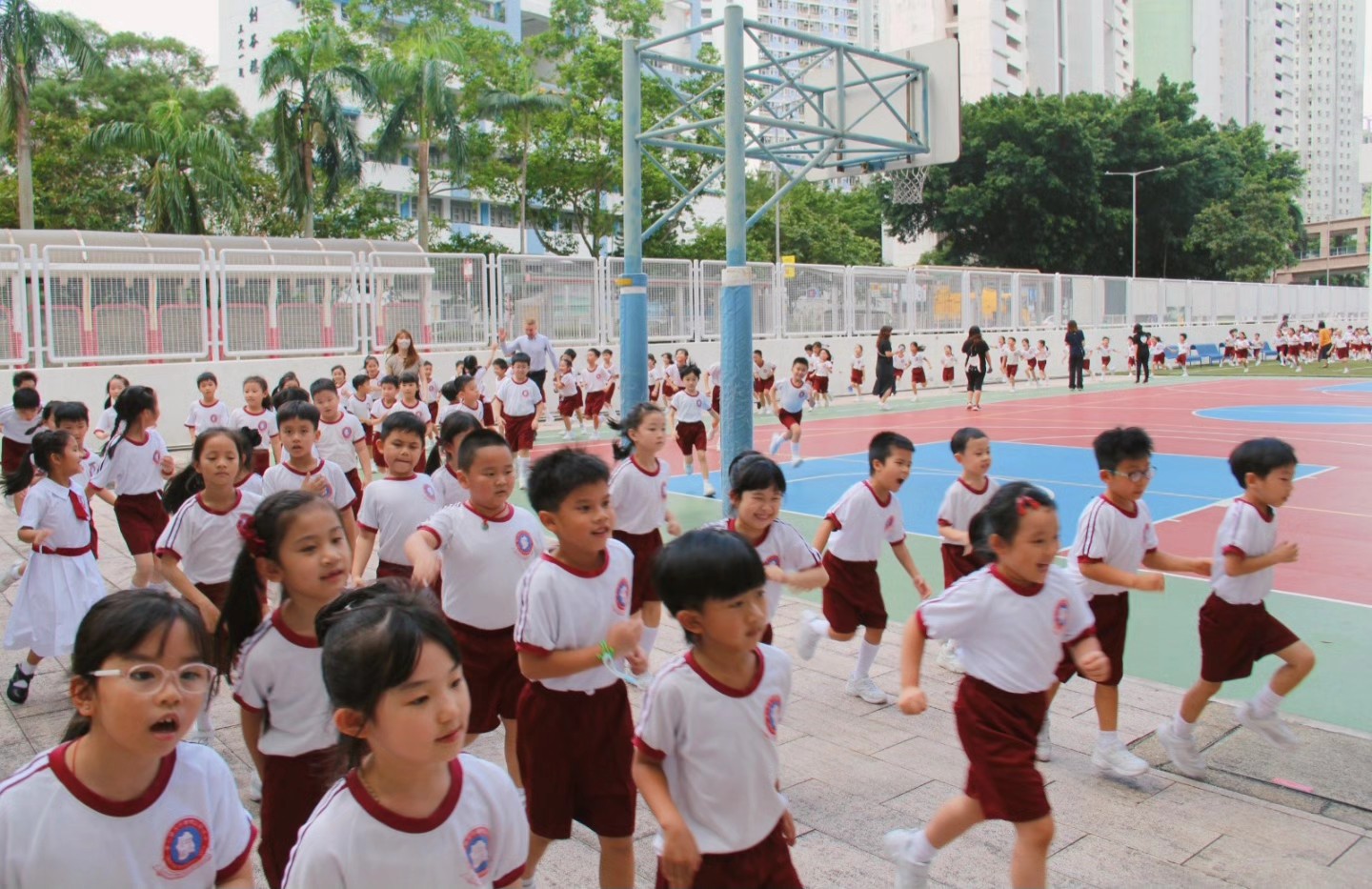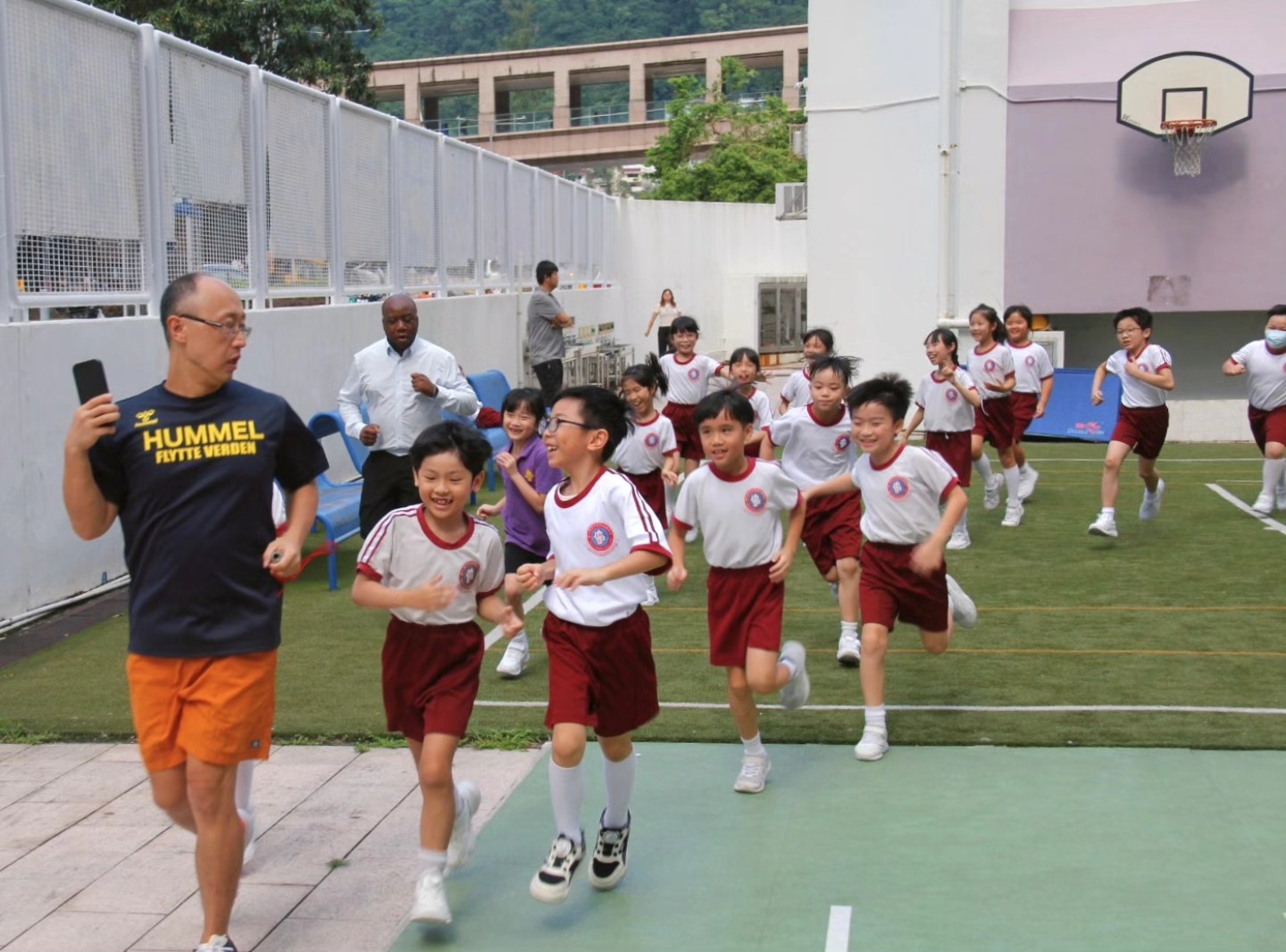 中秋佳節不只是賞月吃月餅,梁潔華小學也鼓勵學生動起來,享受健康校園生活!在導修時段,全校三十班學生在老師帶領下進行簡單運動:一至三年級繞校快步行,四至六年級樓梯來回行(由地下走上天台,再從天台回到底層),挑戰體能、鍛鍊意志!